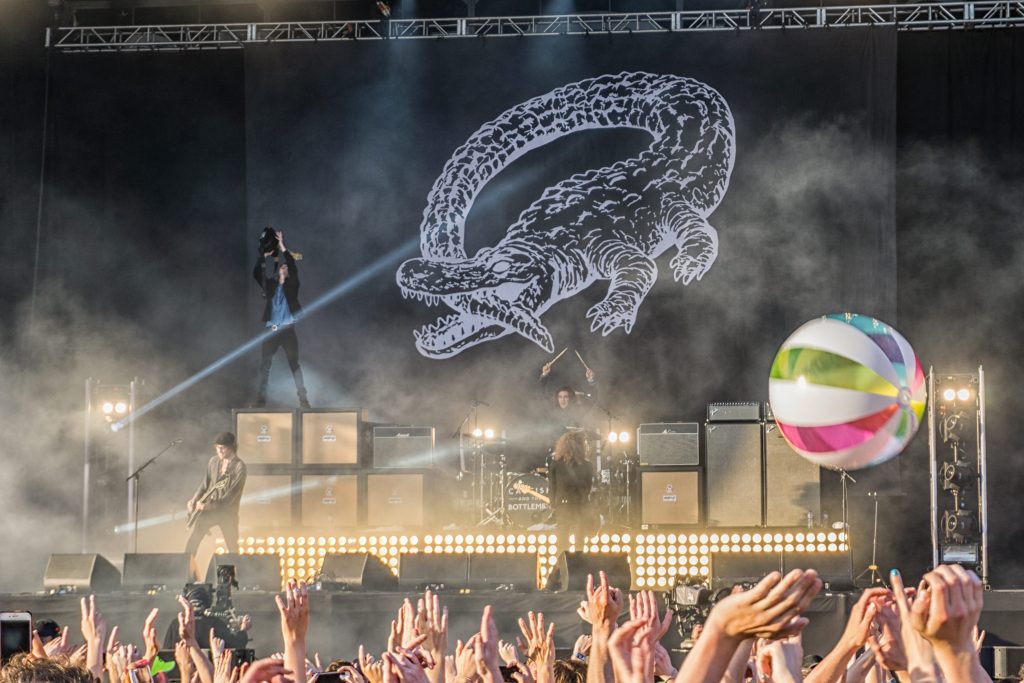 By the time it reached the evening, many enthusiastic glittery faces were looking severely sunburnt around the crowds, but this did not seem to slow the spirit. The main stage Catfish and the Bottlemen seemed to be almost as anticipated as the later star group of the day, and after Ezra’s summery tunes they brought back the rocky attitude to the audience – leaving just one question hanging in the air: how are Kasabian going to outweigh this?