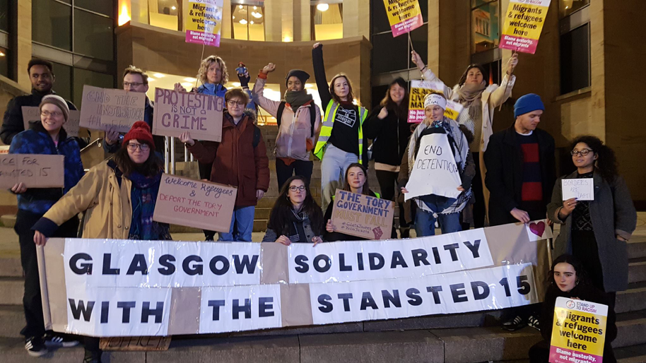 Elisa Gerit, Glasgow protest organiser and member of the Glasgow School of Art stand up to racism society said: “The Home Office are the ones that are guilty, not the Stansted 15 – peaceful protest is not terrorism.”